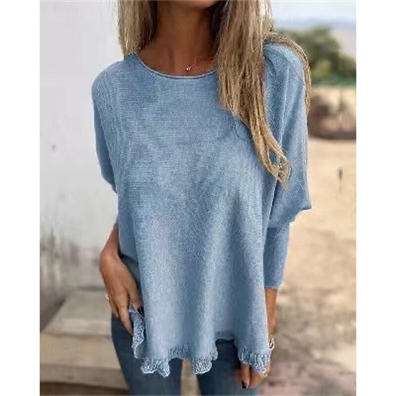 Highlights - Perfect for the fall and winter seasons - Made with relaxing polyester fabric - Features long sleeves for added warmth - Designed for women who want a sleek yet casual look - Suitable for daily wear - Regular fit sweater with a solid color pattern - Crew neck neckline with ribbed knit style.