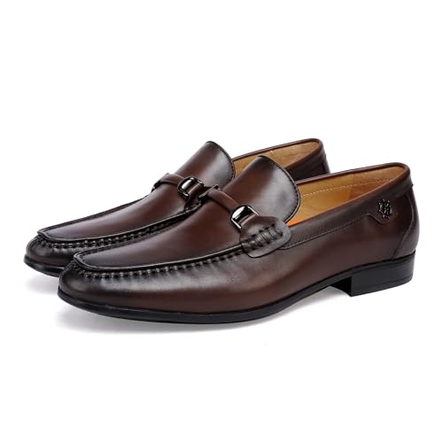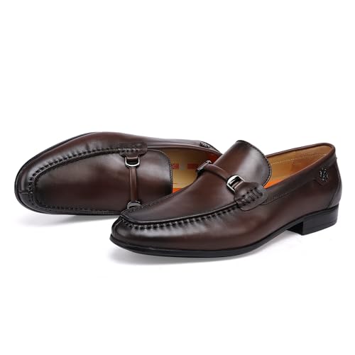 Outer material: LeatherClosure type: Pull-OnHIGH QUALITY DRESS SHOES FOR MENS — This buckle penny loafer are made with a premium leather upper, metal buckle gives a Luxury and Elegant look.COMFORT — Non-slip rubber outsole and cowhide sole for all-day support and relief. Helps reduce impact while walking, offering a smooth, comfortable stride.EASY TO WEAR — The heel features a slip-on design that allows you to quickly put on your shoes. Perfect for those who need to save time in their daily routine. No need to bend down or tie laces for quick and easy on/off.REMOVEABLE INSOLES — Perfect for customizing your fit inserts, these cowhide removable insoles provide ultimate comfort, our removable insole shoes adapt to your lifestyle and needs.OCCASIONS — This men dress loafer shoes will give you casual & fashionable look, suitable for weddings, birthday, anniversary, party, prom, events, dating, holidays. Perfect for everyday use. High quality materials and excellent craftsmanship ensure long-lasting durability.