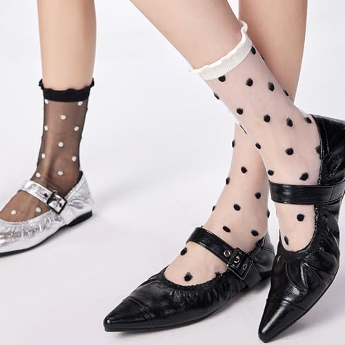 Women's Sheer Socks Ruffle Frilly Nylon Polka Dots Stockings Summer Ultra Thin Cool See Through Cute Calf Novelty Socks for Girls 6 Pack 1