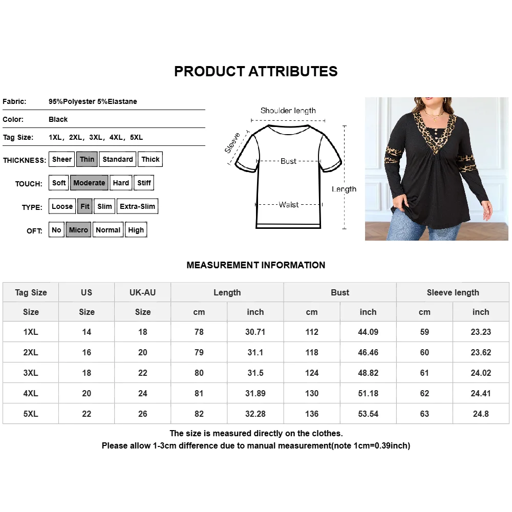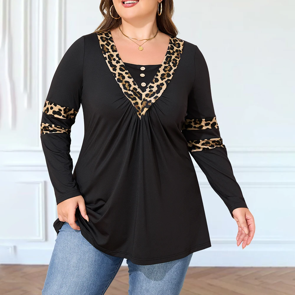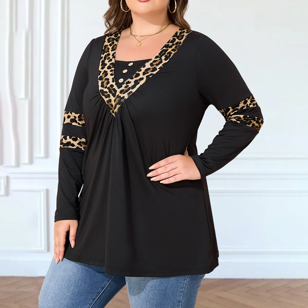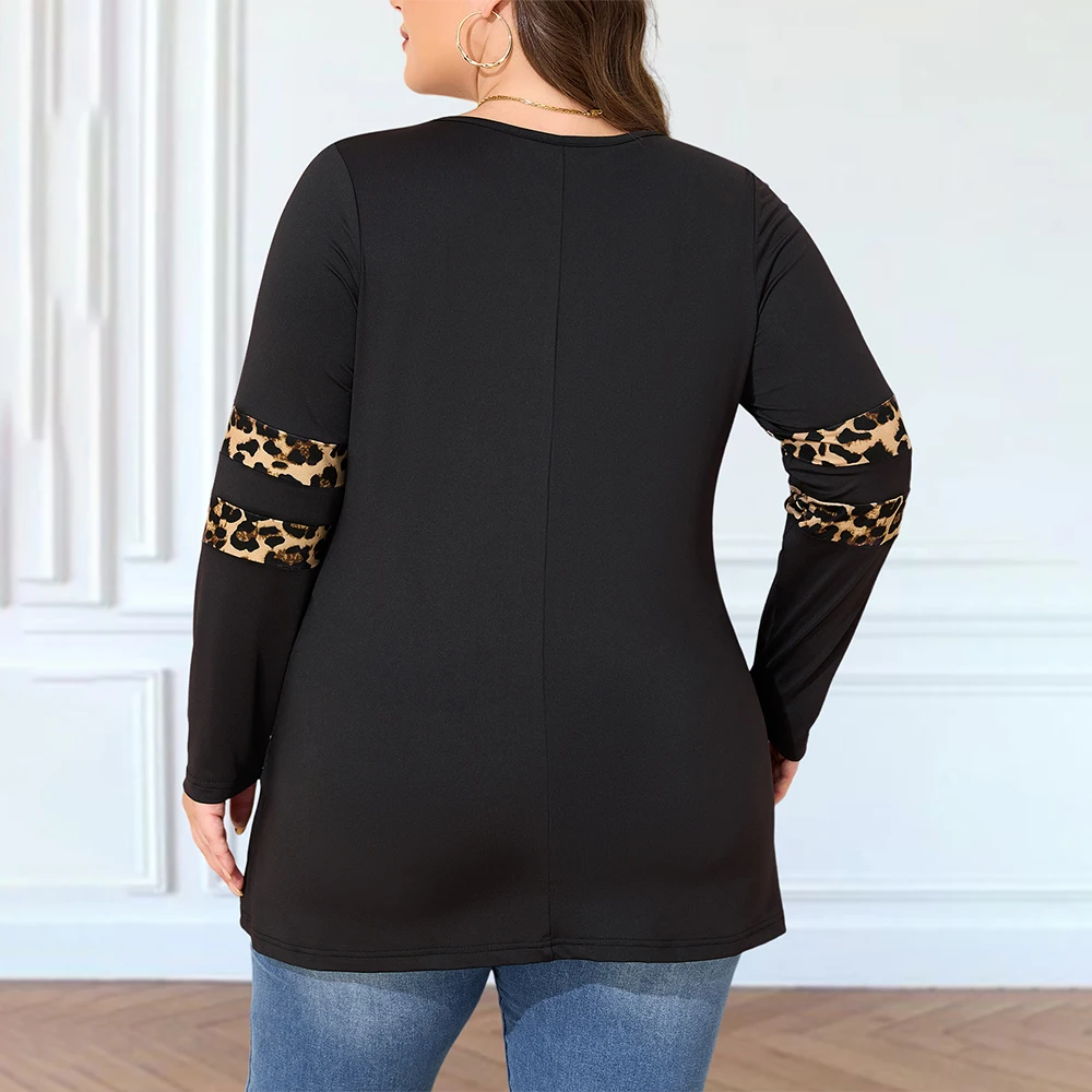 Plus Size Women's Leopard Long Sleeve Top Casual Loose And Comfortable