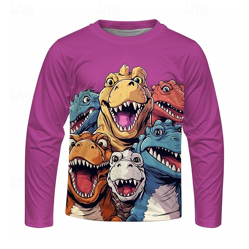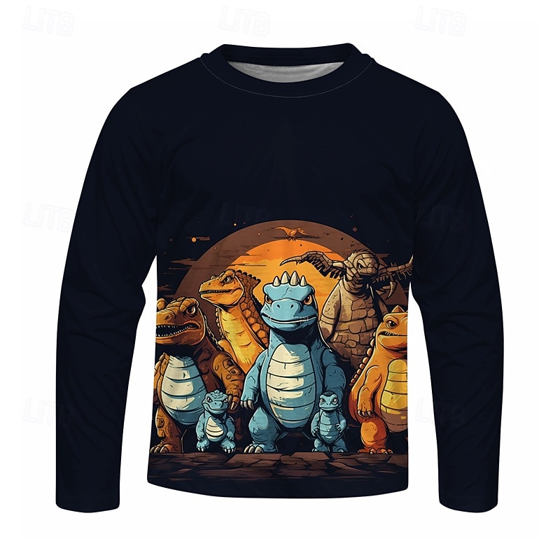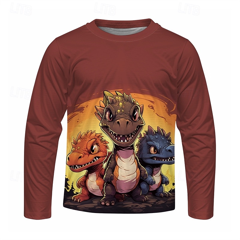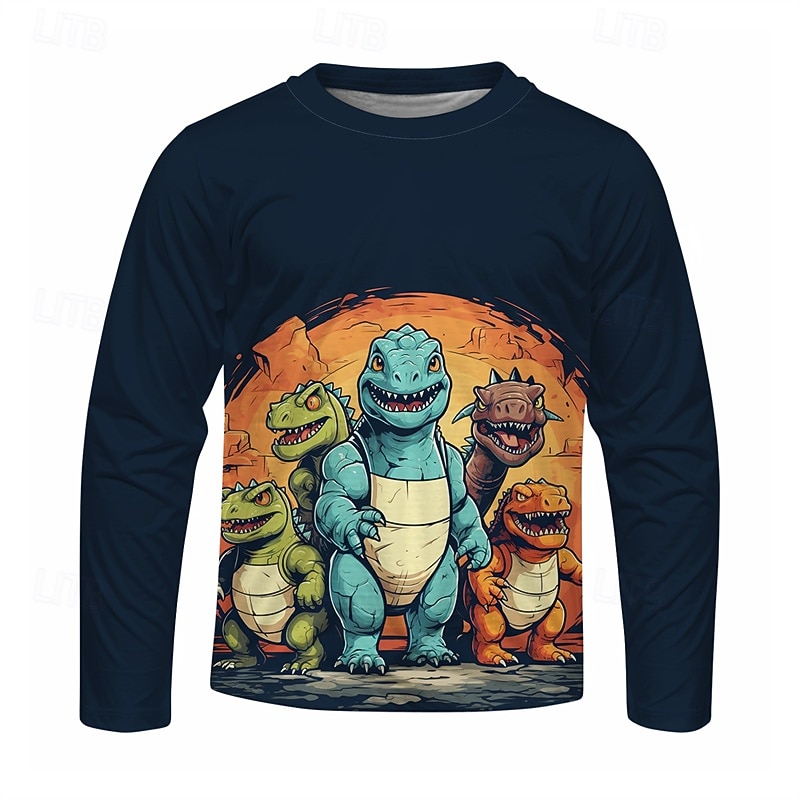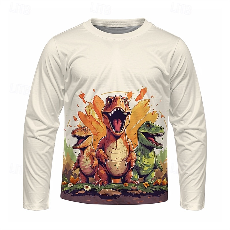 More information about Boys' 3D Cartoon Dinosaur T shirt Tee Long Sleeve Spring Fall Fashion Basic Kids 4-12 Years Crew Neck Outdoor Casual Daily Regular Fit