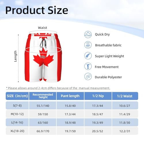 More information about Canadian Flag Youth Beach Pants, Soft and Breathable, with Drawstring Waist, Suitable for Sports and Leisure.