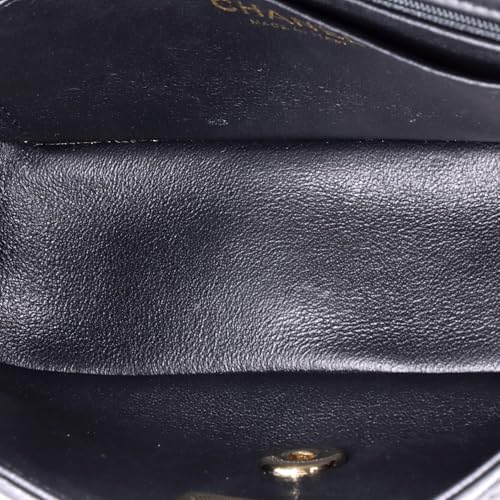 Pre-Loved iconic Single Flap Top Handle Bag Quilted Lambskin Mini, Black