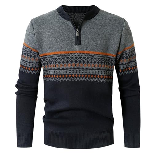 HOT ! Uillui Mens Striped Vintage Sweater Quarter Zip up Crew Neck Pullover Sweaters Fall Casual Slim Fit Knitted Jumper Sweaters