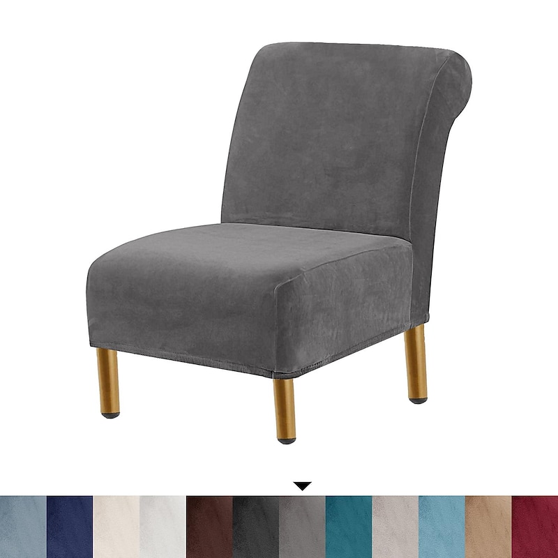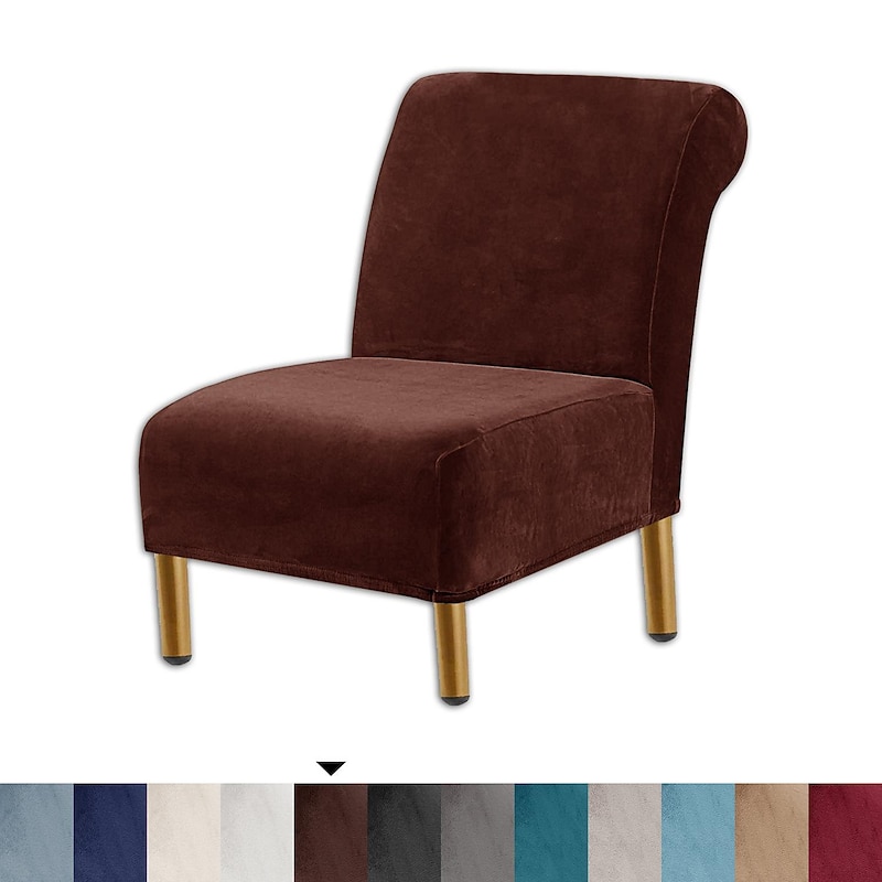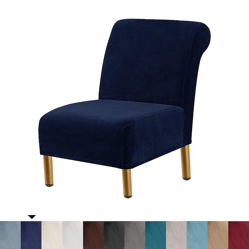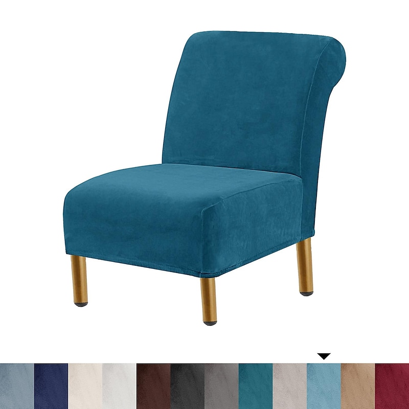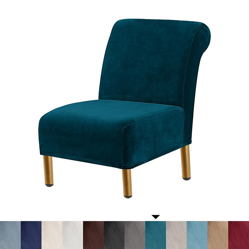 HOT ! Velvet Armless Accent Chair Cover Stretch Armless Chair Cover for Livingroom,Chair Slipcover Protector with Elastic Bottom, Machine Washable