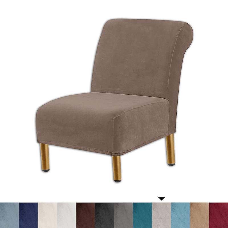 Velvet Armless Accent Chair Cover Stretch Armless Chair Cover for Livingroom,Chair Slipcover Protector with Elastic Bottom, Machine Washable 20
