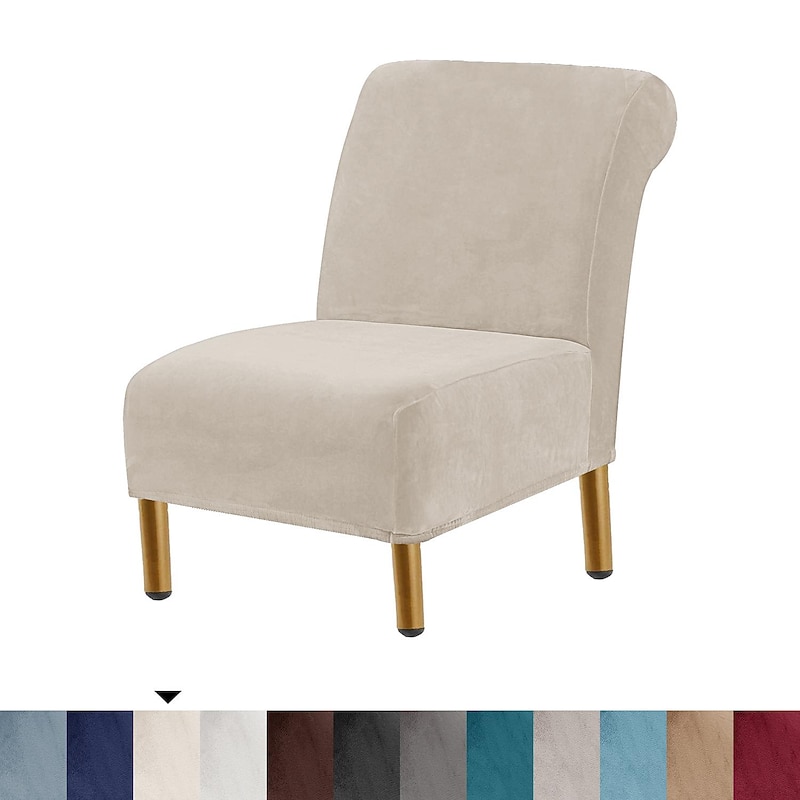 Velvet Armless Accent Chair Cover Stretch Armless Chair Cover for Livingroom,Chair Slipcover Protector with Elastic Bottom, Machine Washable 17