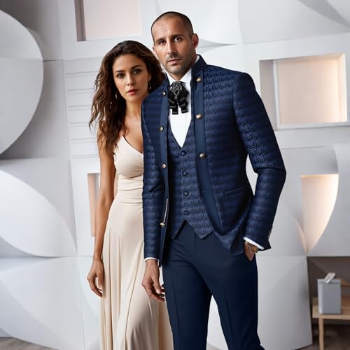 More information about Men's Suits 3 Piece Slim Fit Floral Pattern Jacket Blazer Pants Vest Tuxedo Set for Dinner,Prom,Wedding