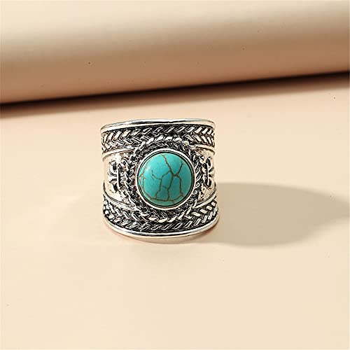Dtja Vintage Boho Turquoise Wide Statement Ring for Women Girls Oxidized Silver Plated Big Open Band Wrap Adjustable Expandable Finger Rings Comfort Fit Fashion Bohemian Ethnic Exaggerated Jewelry 6