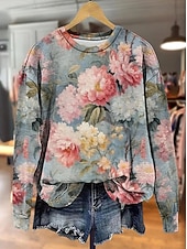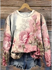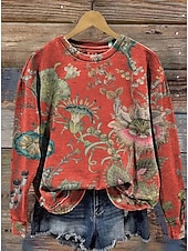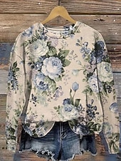 More information about Women's Pullover Sweatshirt Floral Graphic Warm Active Vintage Long Sleeve Round Neck Regular Tops Street Dailywear Casual Print Yellow Pink Red Blue Beige Spring Fall Winter