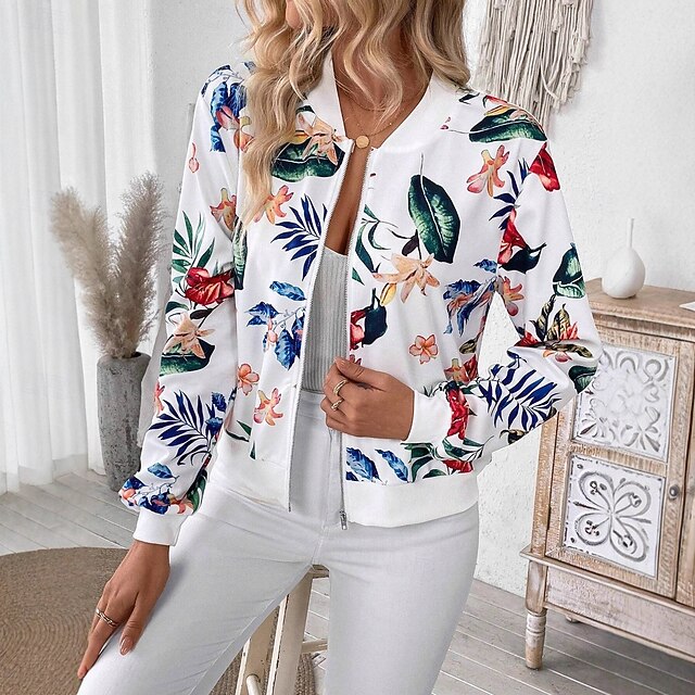 $31.99 - Women's Casual Jacket Comfortable Zipper Fashion Daily Modern Floral School Outdoor Vacation Home Regular Baseball Collar Regular Fit Long Sleeve Outerwear White Spring Fall 2025. Shop for cheap Bomber Jacket online? Buy at lightinthebox.com on sale today!