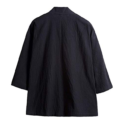 Haseil Men's Kimono Cardigan Japanese Jackets Casual Cotton 3/4 Sleeve Shirt Open Front Coat Lightweight Linen Outwear 4
