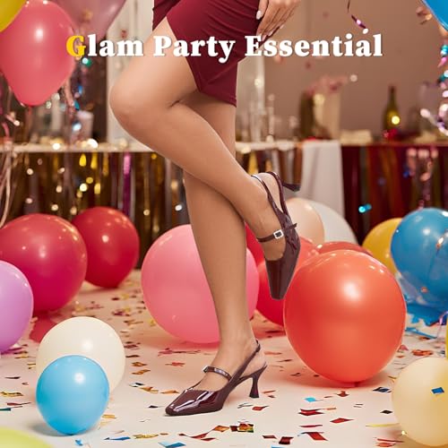 • up-to-date Design:The dress slingback 6cm(2.36 inch) low kitten heel boosts your confidence without causing discomfort. The rhinestone buckle and the shiny patent material makes the shoe more dressy.
