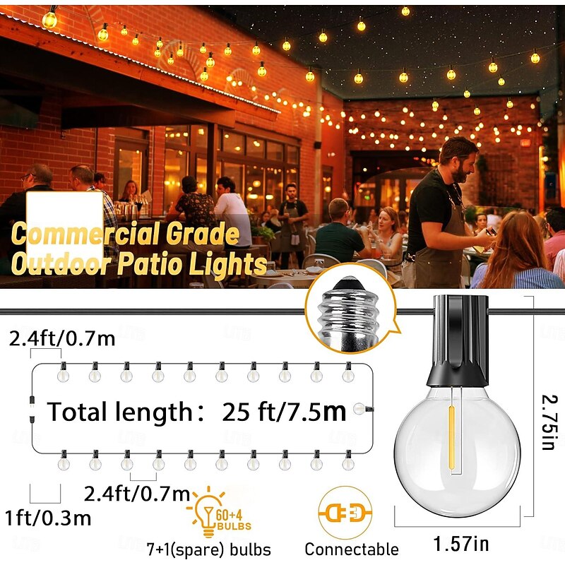 $52.59 - UL Certified Outdoor LED Bulb String Lights 98ft 30m String Lights Outdoor with Shatterproof G40 LED Bulbs Waterproof Hanging Patio Lighting for Christmas Patio House Backyard Balcony Party 2025. Shop for cheap Plug String Lights online? Buy at lightinthebox.com on sale today!