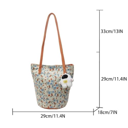 Women's retro floral large capacity single shoulder crossbody canvas tote lazy bucket bag 5