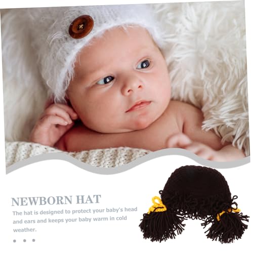Adorable Winter Knit Hat with Wig Decoration for Boys and tender heated Beanie for Daily Wear and Photo Sessions for Years Coffee