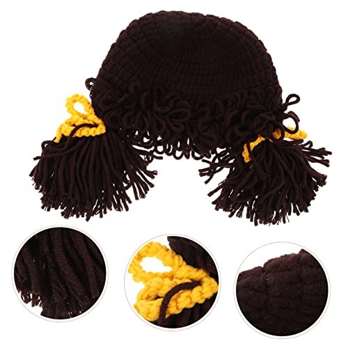 Adorable Winter Knit Hat with Wig Decoration for Boys and Soft Warm Beanie for Daily Wear and Photo Sessions for Years Coffee 3