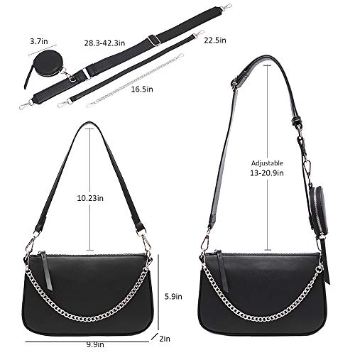 Fabric type: 100% PolyurethaneOrigin: ImportedClosure type: ZipperLining: Faux LeatherMultifunctional Design: Three-in-one multi pochette bag includes a main pocket, a round zipper coin purse, an adjustable wide shoulder strap, a short leather shoulder strap and a metal chain handle. It can be combined or separately used as a trendy cross body bag, clutch shoulder bag, handbag, waist bag and clutch handbagDurable Fabric: This women small crossbody bag is made of high-quality PU material, the leather is plush and smooth, strong and long-lasting. The custom metal hardware design makes this small retro shoulder bag more luxurious, generous and elegantSuitable For Different Occasions: This lightweight multi pochette shoulder bag can be combined or split into different types of bags to perfectly match different styles of fashion. It is very suitable for women or girls engaged in work, dating, shopping, travel and other activities. It is the perfect gift for lovers and friends on Valentine's Day, Christmas and new yearPerfect Size: main bag:10.4 * 2 * 5.9; coin bag diameter: 3.7; adjustable wide shoulder strap length: 28.5-42.3 inches; short belt length:22.5; metal chain length: 16.5Large Capacity: This retro shoulder bag can meet most of your daily necessities storage needs. The inside of the bag is designed with zipper side pockets, which can store valuables such as cards and cash. The main space can accommodate cosmetics, small umbrellas, wallets and mobile phones. The extra small wallet can also easily put keys or coins