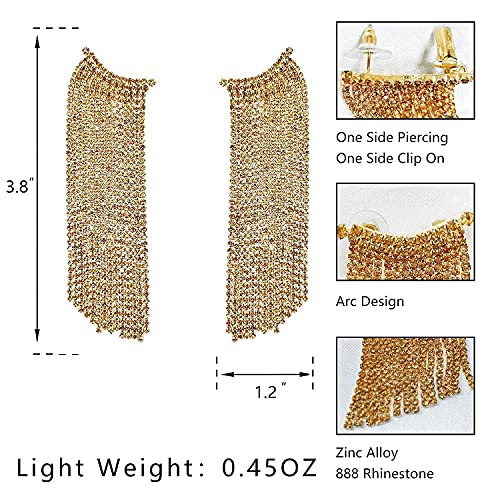 Uncle J Gold/Silver Rhinestone Crystal Long Tassel Dangle Earrings-Fringe Chain Chandelier Drop Earrings for Women, Wedding, Gifts 5