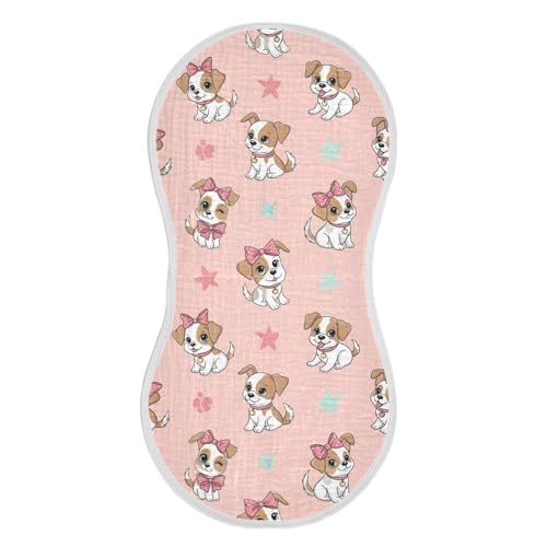 J JOYSAY Dogs Bow Pink Baby Burp Cloths for Boys Girls Large 22''x11'' Cotton 4 Layer Newborn Towel for Baby Newborn one sizex4 6
