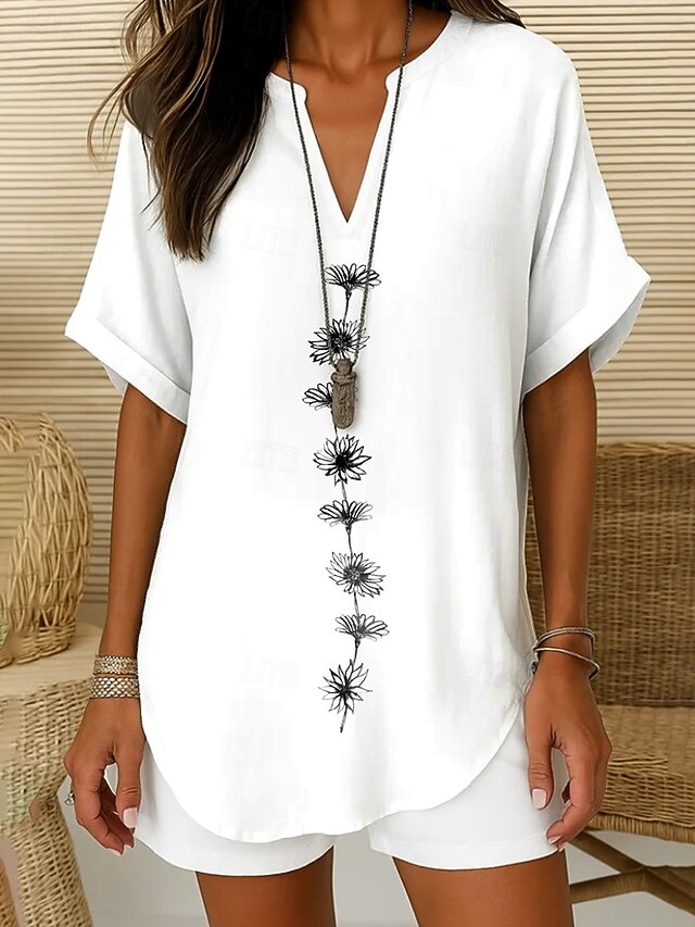 Women's Boho Shirt Floral Graphic Elegant Tropical Daily Sleeveless Short Sleeve Regular Tops Daily Holiday Beach Wear Black White Red Blue Green Summer Spring 1