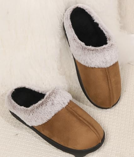 HOT ! Pocadri Winter Slippers for Women Men Memory Foam House Shoes Faux Suede Upper Faux Fur Lining Warm Comfy Indoor Fuzzy Non-Slip Slippers