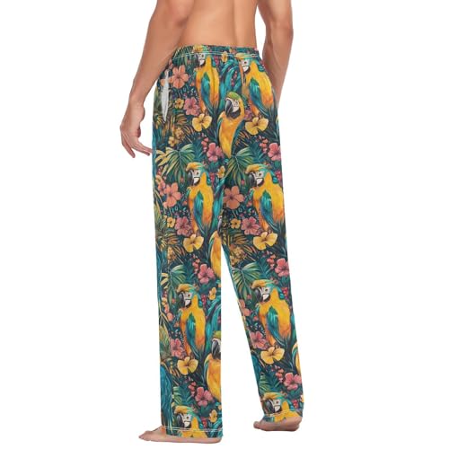 ALAZA Tropical Floral Parrots Men’s Pajama Pants Soft Long Sleep Pants Lounge Pajama Bottoms with Pockets 1