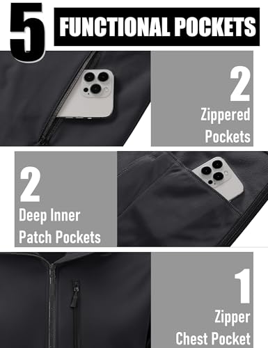 • 5 FUNCTIONAL UTILITY POCKETS - Men's tactical hiking jacket includes 2 inside roomy pockets, 2 zipper hand pockets and 1 zipper chest pocket, providing great convenience for storing money, keys, phone, wallet etc