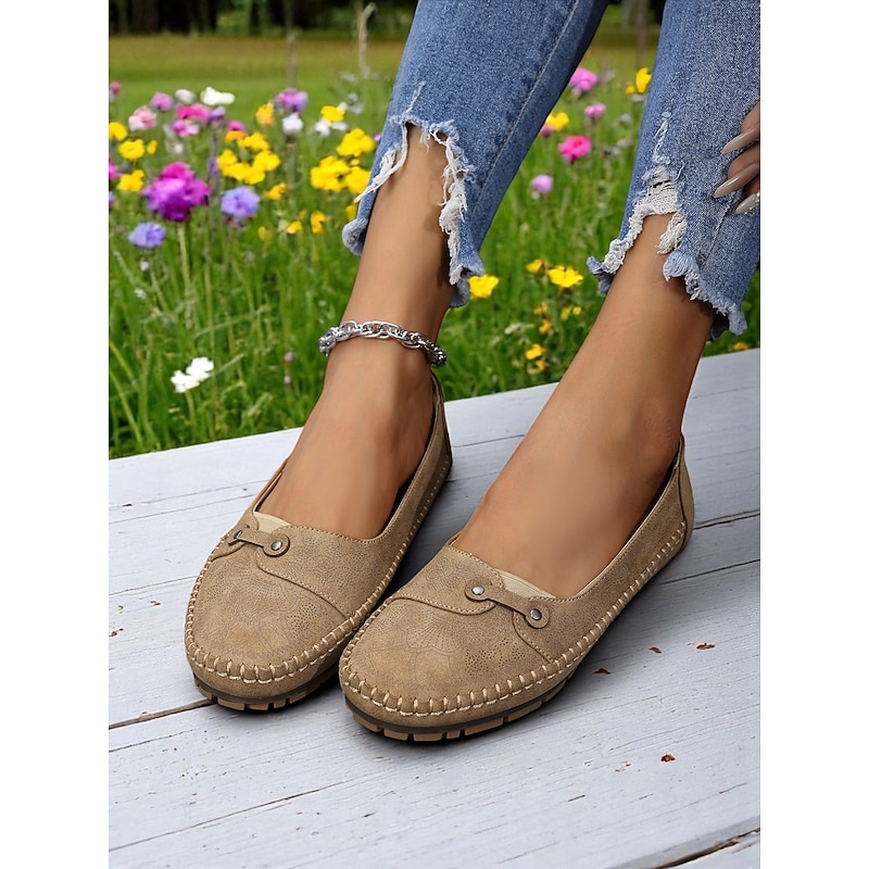 HOT ! Women's Casual Moccasin Loafers with Hand-Stitched Details – Lightweight Slip-On Flats, Great for Driving, Daily Errands, Weekend Walks & Outdoor Gatherings