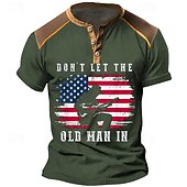 Men's T-Shirt "Don't Let The Old Man In" Graphic American Flag Guitar Player Country Music Lifestyle Short Sleeve Henley 3