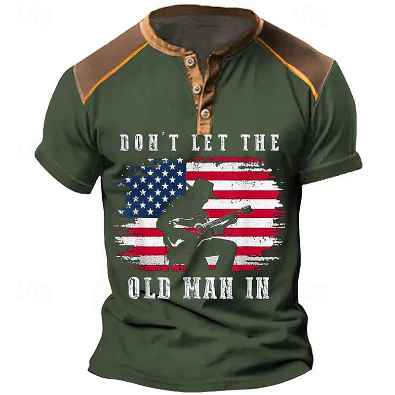 Men's T-Shirt "Don't Let The Old Man In" Graphic American Flag Guitar Player Country Music Lifestyle Short Sleeve Henley 6