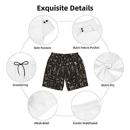 More information about Ancient Egyptian Hieroglyphs Black Gold Mens Swim Trunks Quick Dry Swim Shorts Swimwear Bathing Suits with Pockets