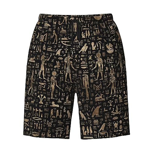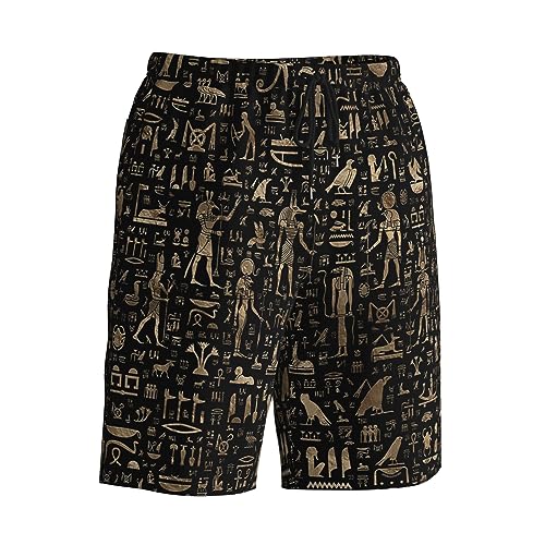 HOT ! Ancient Egyptian Hieroglyphs Black Gold Mens Swim Trunks Quick Dry Swim Shorts Swimwear Bathing Suits with Pockets