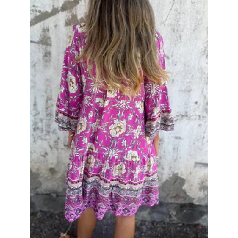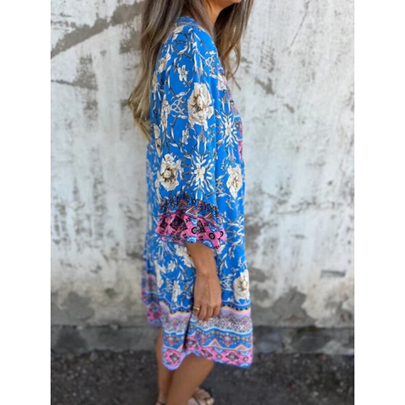 More information about Women's Midi Dress Casual Dress Boho Chic Dresses Bohemia Casual Boho Vacation Daily Beach Loose Fit Floral 3/4 Length Sleeve Shirt Collar Navy Blue Royal Blue Purple Summer Spring