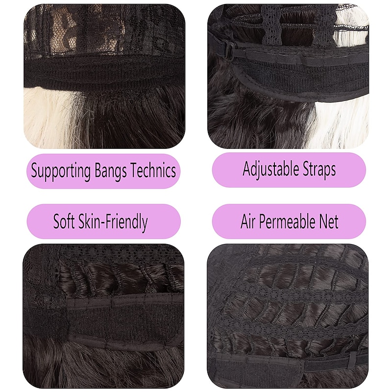 More information about Black and Blonde Wig for Girls Short Wavy Half Black Half Blonde Wig with Bangs Cruella Deville Women Cosplay Synthetic Wig Daily Party Halloween Wigs