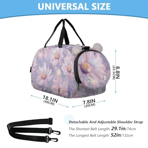 Duffle Bag for Boys or Girls with Shoes Compartment, Summer Pink Daisy Sports Travel Bag Overnight