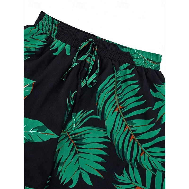 Women's Casual Jacket Suits Breathable Comfortable Drawstring Print Casual Leaf Vacation Street Holiday Daily Wear Open Front Regular Collarless Regular Fit Half Sleeve Outerwear Red Green Summer 11