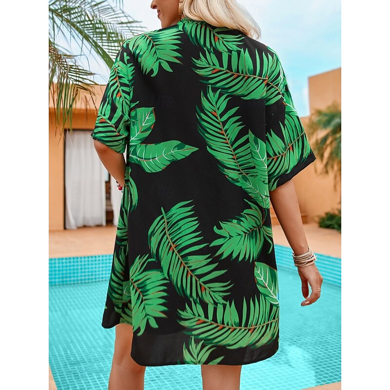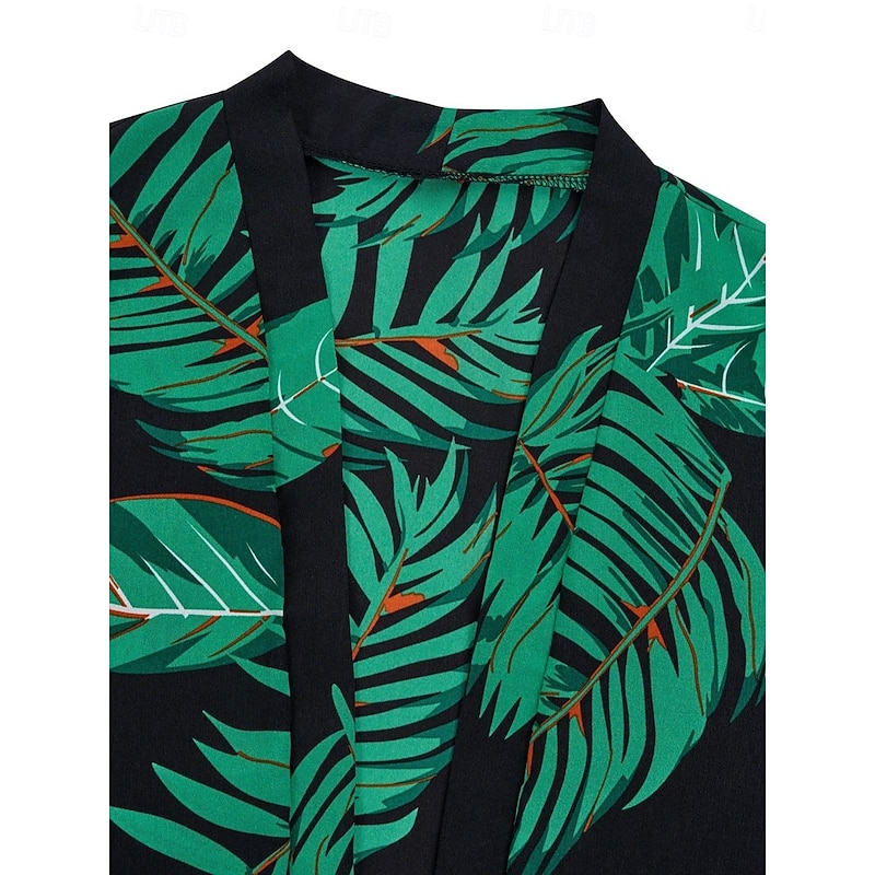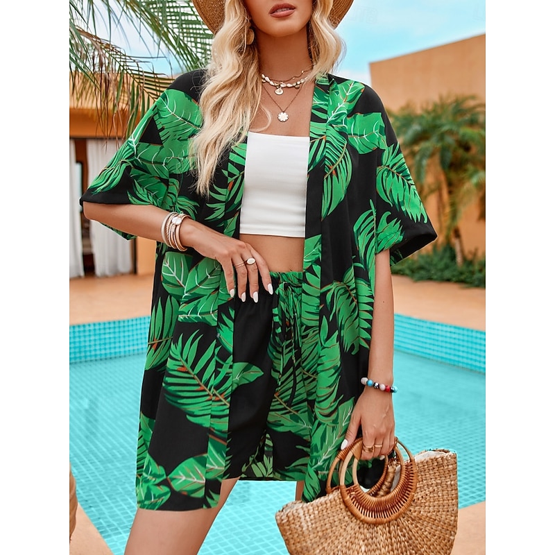 More information about Women's Casual Jacket Suits Breathable Comfortable Drawstring Print Casual Leaf Vacation Street Holiday Daily Wear Open Front Regular Collarless Regular Fit Half Sleeve Outerwear Red Green Summer