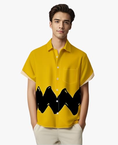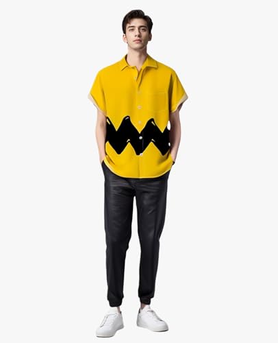 • 【Garment Care】This Art Stripe Yellow Print short sleeve shirts are machine washable, they will not fade or shrink, easy to take care and travel pack.