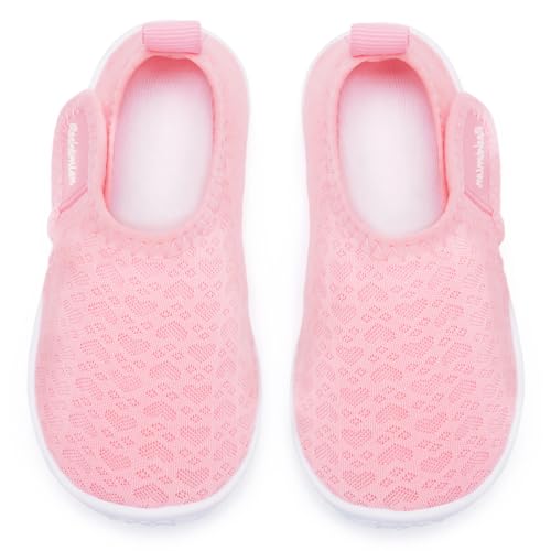 • BREATHABLE AND FAST DRYING: These fashionable and cute baby water shoes have a breathable and skin-friendly upper that wicks away water in wet environments and allows air circulation to dry the shoes quickly, so toddlers can wear them for a long time and stay comfortable.