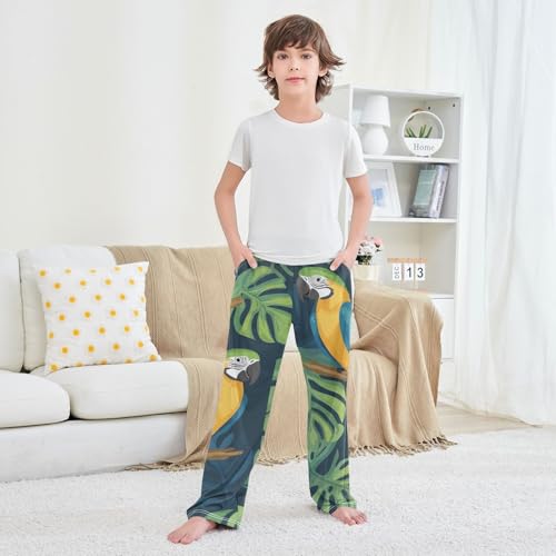 Parrots and Leaves Boys Long Pants Soft Trousers Elastic Waist Kids Lounge Bottoms with Pockets S-XL 4