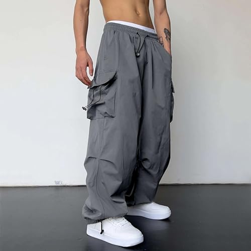 HOT ! Men's Baggy Cargo Pants Streetwear Lightweight Casual Parachute Pant Athletic Drawstring Harem Joggers with Pockets