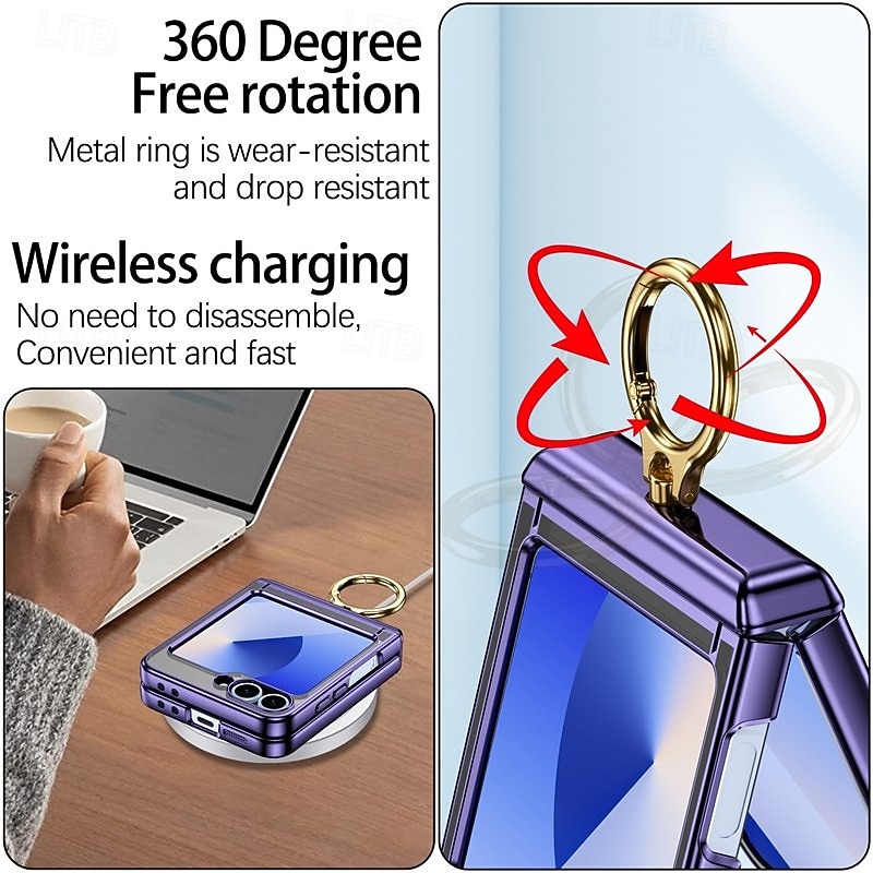 More information about Phone Case For Samsung Galaxy Z Flip 7 Z Flip 6 Z Flip 5 Back Cover Ring Buckle Shockproof Retro Plating PC
