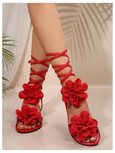 GORGLITTER Women's 3d Flower Lace Up Sandals Floral Braided Open Toe Strappy Tie Up Beach Slide Shoes 2025 2