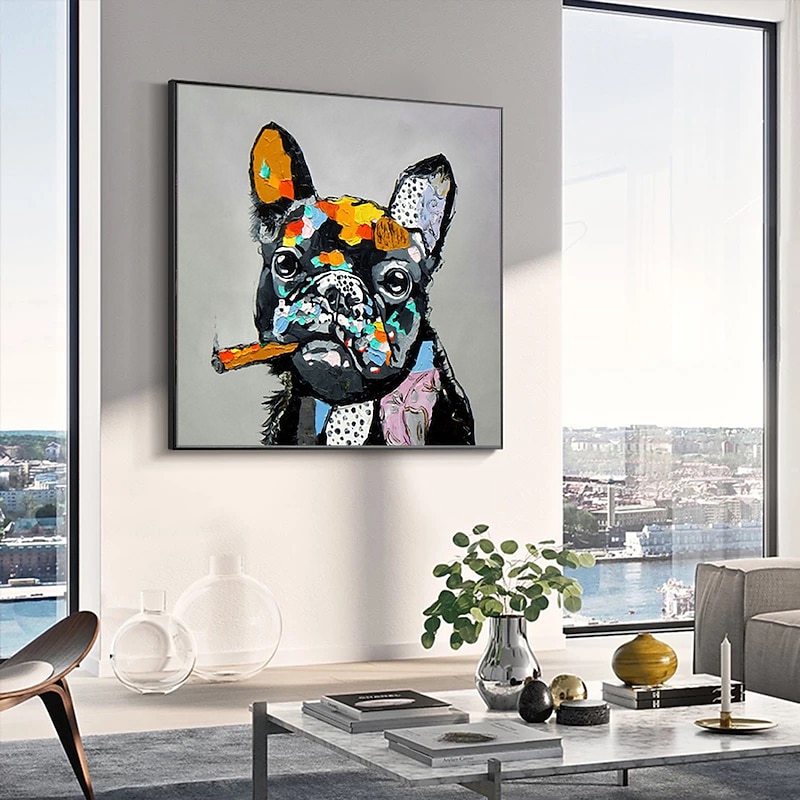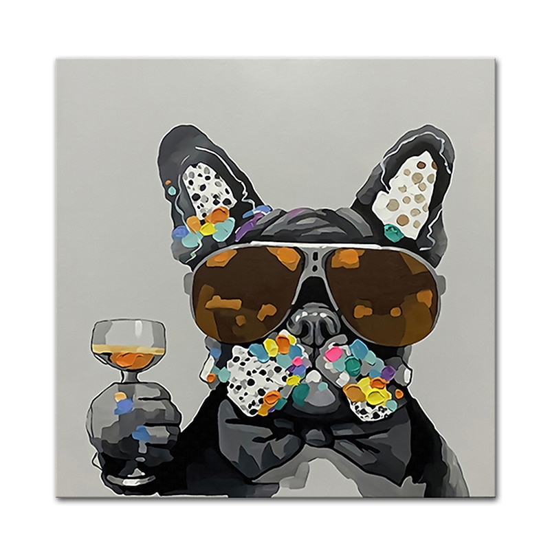 Oil Painting Hand Painted Square Animals Pop Art Modern Stretched Canvas / Rolled Canvas 8