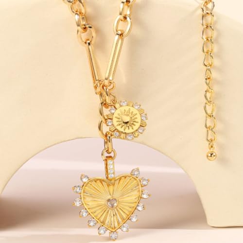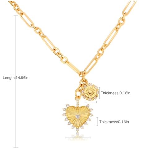 More information about Chunky Gold Heart Necklaces for Women 18K Gold Plated Charm Necklace Sun Pendant Chain Jewelry.