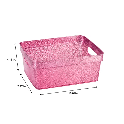 Simplify 3 Pack Small Glitter Tote Bin | Home Storage Basket | Bathroom and Office Organization | Multipurpose | Lightweight | Carrying Handles | Pink 3