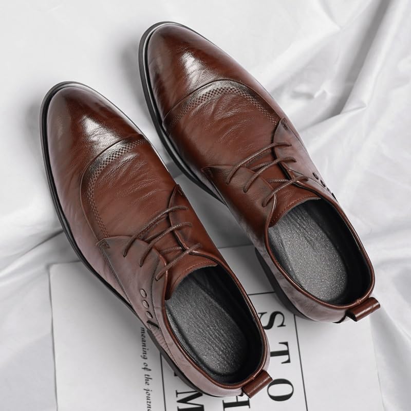 Men's Oxford Shoes Classic Casual Lace Up Round Toe Lug Sole Dress Derby Shoes Work Office Business Height-Increasing Shoes 6