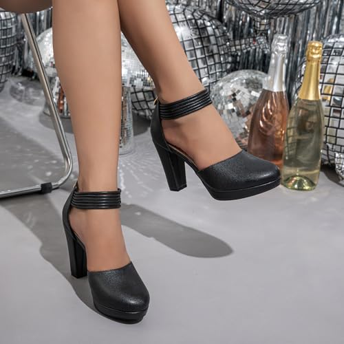 Closed Toe Heels Platform Heels Ankle Strap Dress Shoes for Women
