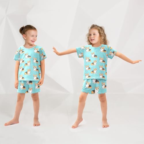 ALAZA Hipster Puppy Dog Blue Pajamas Short Sleeve 2 Piece Sleepwear Top and Bottom Pajama Set Unisex 6